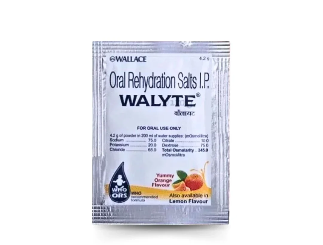- The 22 gramme, 1 sachet Walyte ORS Mango Powder aids in replenishing the fluids and minerals lost as a result of vomiting or diarrhoea.
